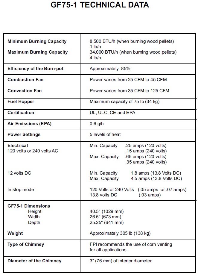 Regency Greenfire GF75-1 Pellet Stove Manual