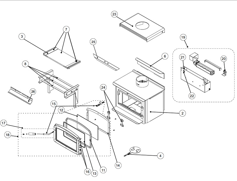 Regency F1150 Freestanding Wood Stove Parts List