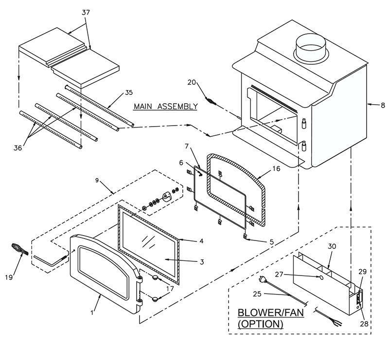 Regency F2100 Freestanding Wood Stove Parts List